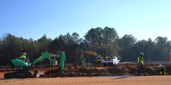 Workers perform tasks at the project site. (Photo by Tony Judnich)