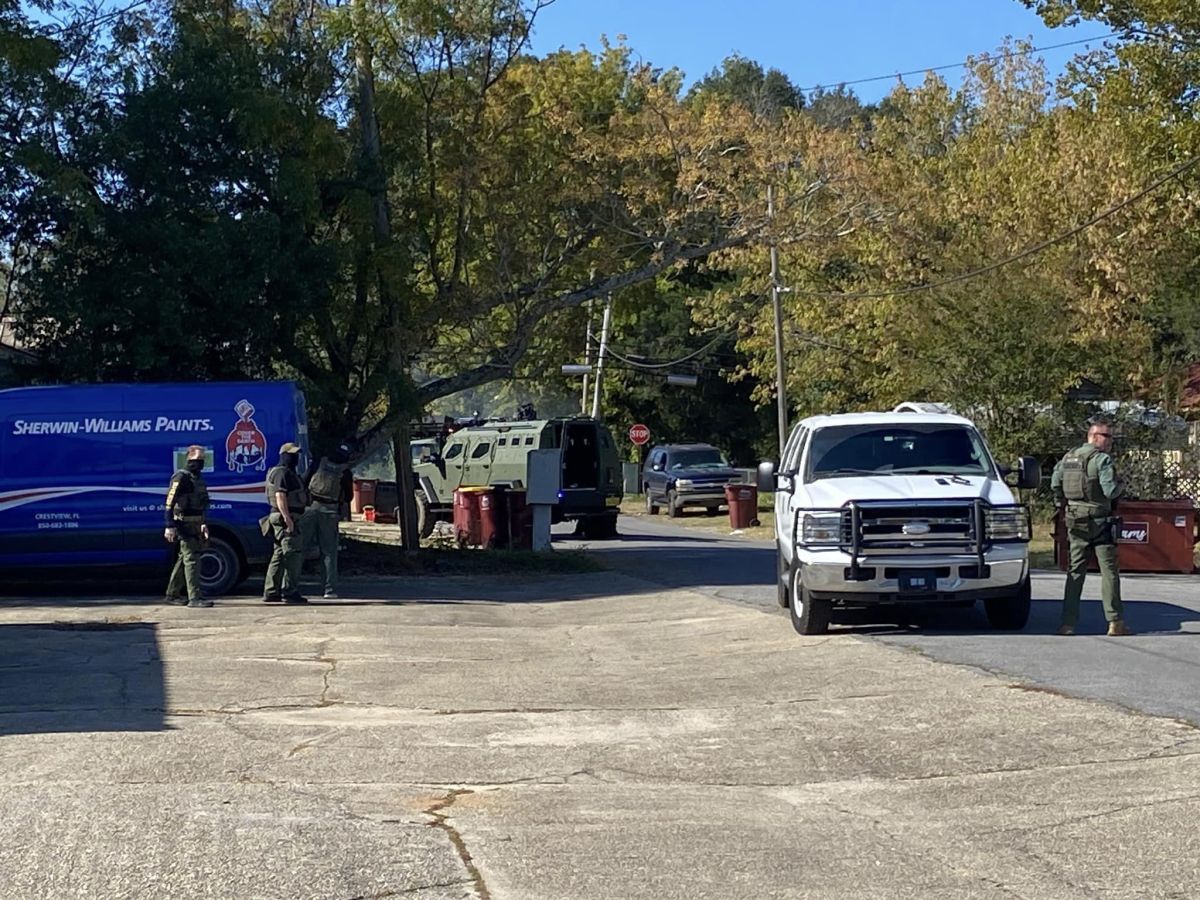 Okaloosa County Sheriff’s Office and Crestview Police Department officials went to the apartment at about 10:20 a.m. Minutes later, a member of the S.O. began ordering all occupants of the apartment to come to the front door with their arms up after letting them know a search warrant was being served. A flash-bang device was utilized by authorities at the scene.