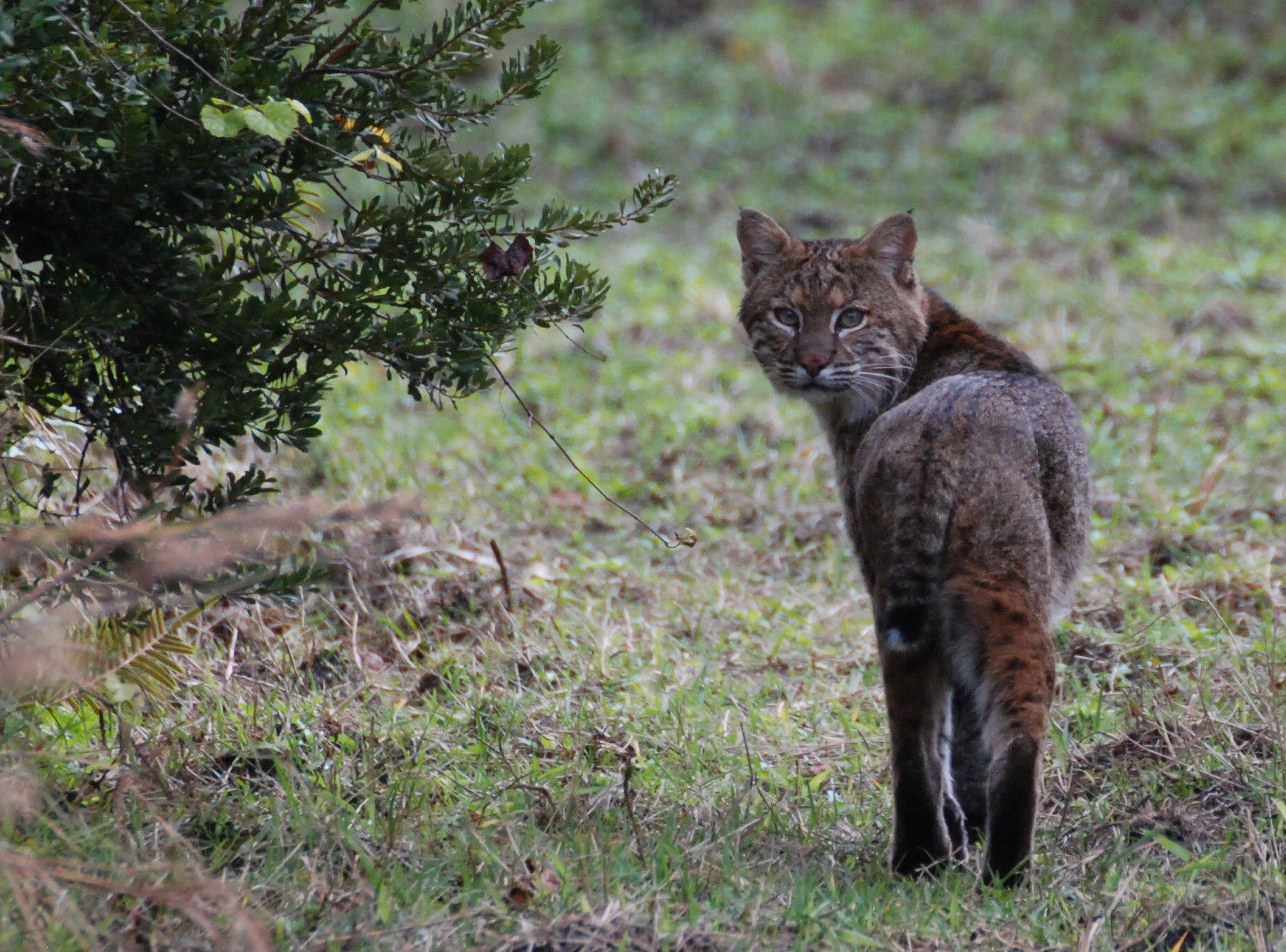 A bobcat considers its next move.
