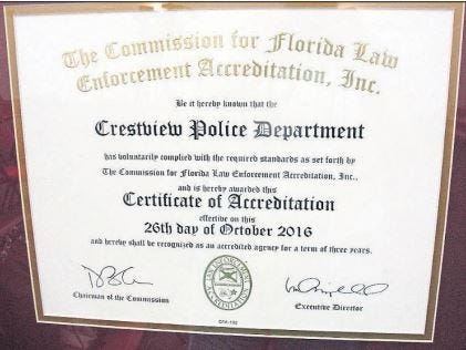 “This is not just something that is given out,” Taylor said during a news conference. “There has been a lot of hard work by the Crestview Police Department. The accreditation is the brass ring for law enforcement agencies and it professionalizes our department.”