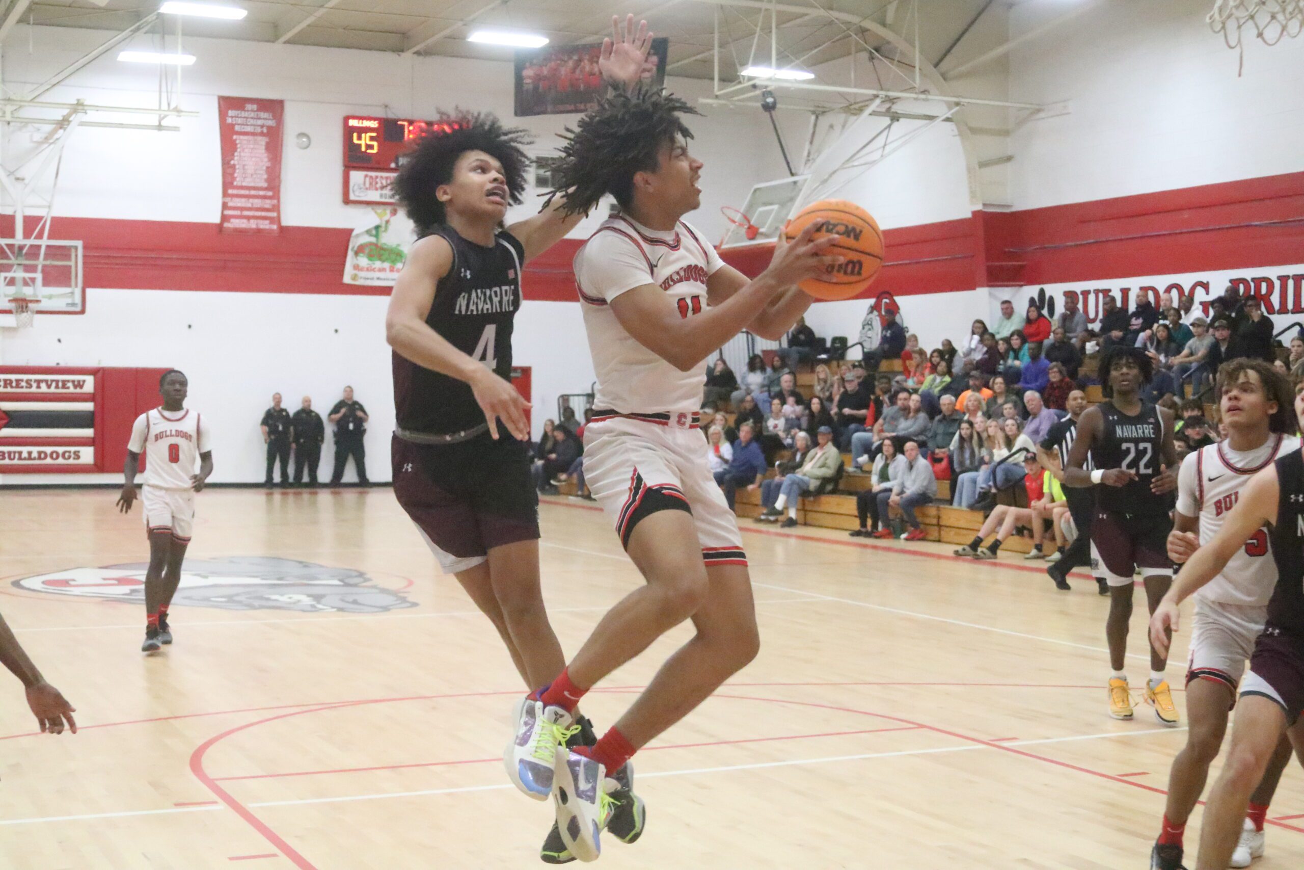 The complexion of the game seemed to be at a turning point when Navarre’s Jonah Forrest delivered a 4-point play to cut the Bulldog lead for 12 points to eight points.