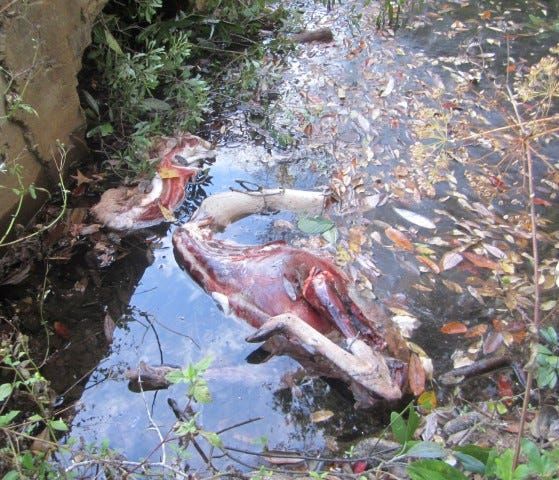 Who do you call when animal carcasses are dumped in waterways?