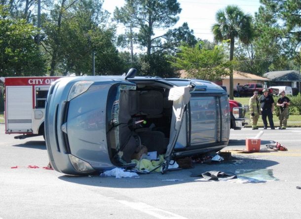 CRESTVIEW — There were no injuries in a Thursday morning two-vehicle accident at the intersection of Main Street and State Road 85 that left a van toppled on its side.