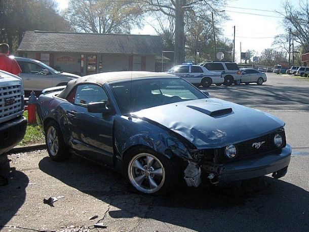 CRESTVIEW — A Ford Mustang is battered following a morning accident on State Road 85 just north of the U.S. 90 intersection.