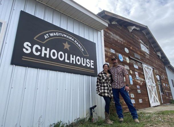 During “Ranch Day” each Friday, students in the K-12 Wagyumama Schoolhouse homeschool instructional program learn, among other skills, how to build a shelter, make a fire with nothing but a flint rock, change a tire, drive a tractor, take care of animals, and be good stewards of the land.