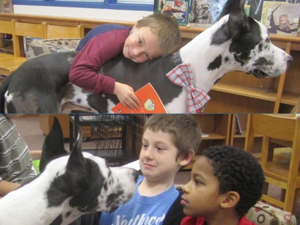 Dozer goes to school: Northwood students read to canine celeb