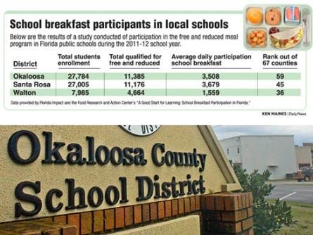 Okaloosa County Schools have one of the lowest free and reduced school breakfast participation rates in the state, but it's not because it's lacking in hungry children, according to a recent study.