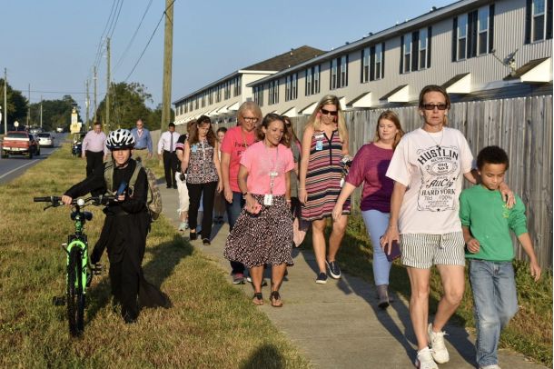 Faculty at Riverside Elementary School joined the school’s walkers on their trek to school Wednesday morning.Their efforts were part of National Walk to School Day.