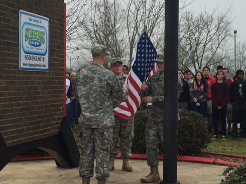 CRESTVIEW — Northwood Arts and Science Academy fifth-graders Andrea Barnhill, Ben Williams, Allison Fordyce and Emma Bofinger take their roles as honor guardsmen seriously.