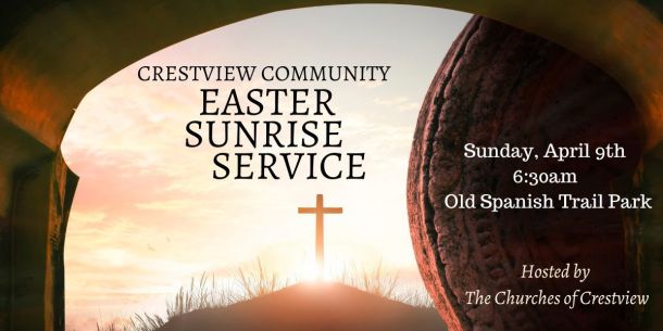 On Sunday, April 9, clergy from Crestview and surrounding communities will offer an Easter sunrise service at 6:30 a.m. at the pavilion at Old Spanish Trail on Stillwell Boulevard.