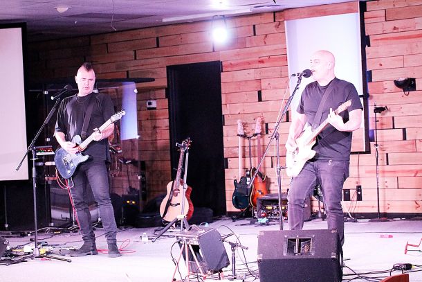 Peter Furler of the “Newsboys” and Bryan Olesen, formerly a contestant on the hit TV show “The Voice” and once a member of the “Newsboys” performed in a concert for the guests inside the church’s sanctuary.