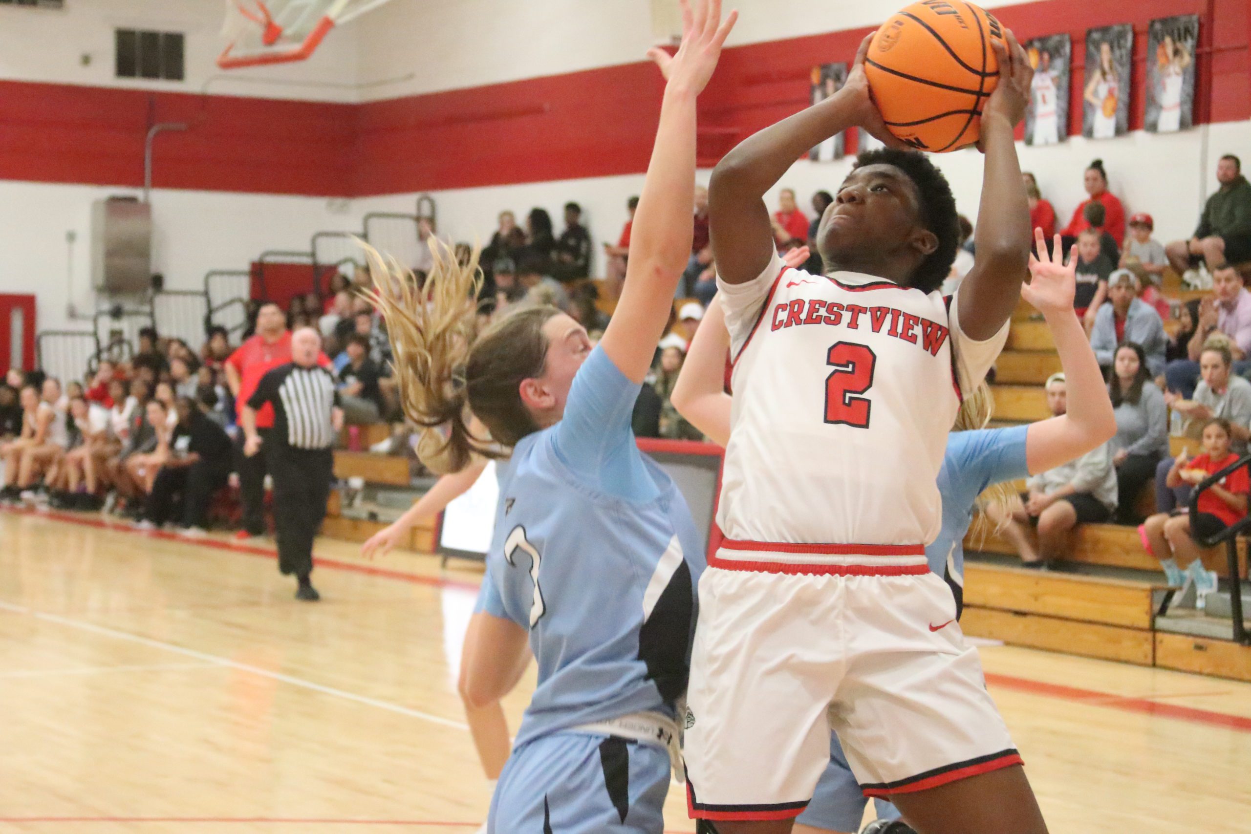 Crestview led first though as Katiya Casey hit a 3-pointer that was followed by a 2-point basket by Gracie Boydstun. Elise Simmons scored the other Crestview basket off and offensive rebound.