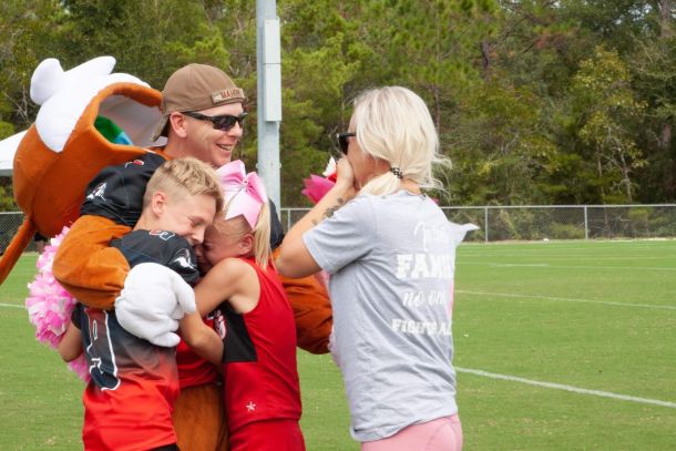 Brad Mahoney had been deployed since April 1 when he surprised his wife and children at a youth football game.