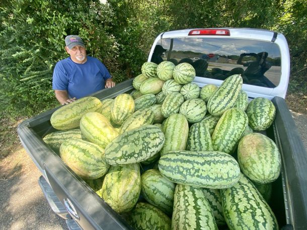 As the outside temperature reached 94 degrees shortly before 1 p.m. today, 67-year-old Crestview resident Danny Newton thanked yet another customer for buying a watermelon from the bed of his pickup truck and told her to “Have a blessed day.”
