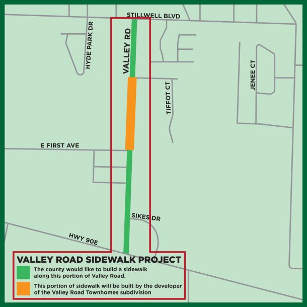 Next year, Okaloosa County officials hope they’ll receive federal money to cover most of the cost of a proposed sidewalk project on Valley Road within and next to Crestview’s city limits.