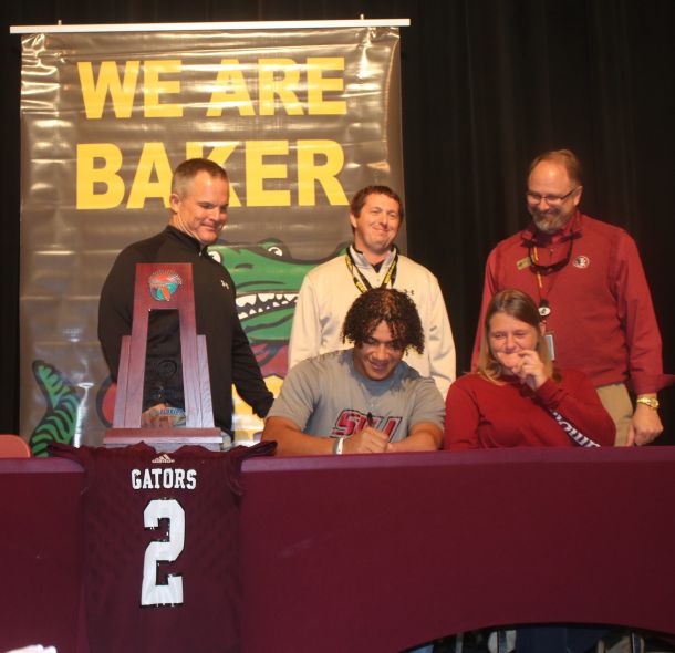 He becomes the first Baker football player to sign with a Division I school since Montae Barto signed with Troy University prior to the 2016 season.