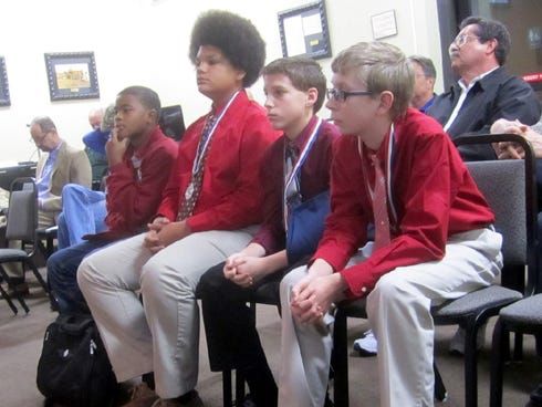 CRESTVIEW — More than 40 residents, including city leaders, Cub Scouts and veterans, gathered under cloudy skies in the courthouse plaza Monday afternoon for the Crestview Exchange Club's annual Stan…