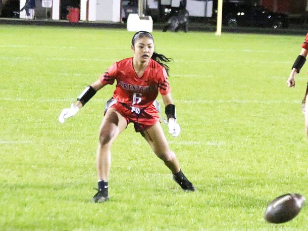 Crestview’s flag football team hosted Pace in the home opener on Friday night with the Lady Patriots coming out on top 14-6.
