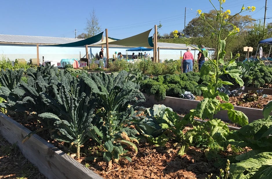 CRESTVIEW — Colorful rows of cabbage, kale, swiss chard and carrot tops line a patch of land nestled downtown between Main Street and Ferdon Boulevard.