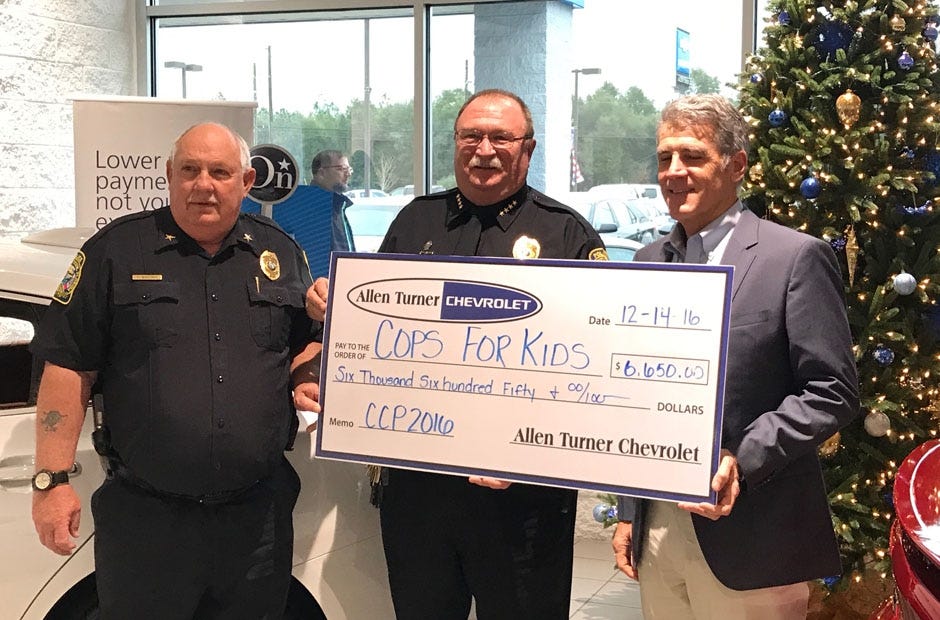 CRESTVIEW — The season of giving occurs year-round for one auto dealership. Allen Turner Chevrolet raised $6,650 throughout the year for Crestview Police Department’s Cops for Kids program.