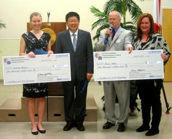 CRESTVIEW — Michelle Hokans, of Crestview High School, and Fiona Lukas, of Baker School — both mathematics teachers — each received $5,000 as the first two Paul Hsu Foundation Teaching Excellence Awa…