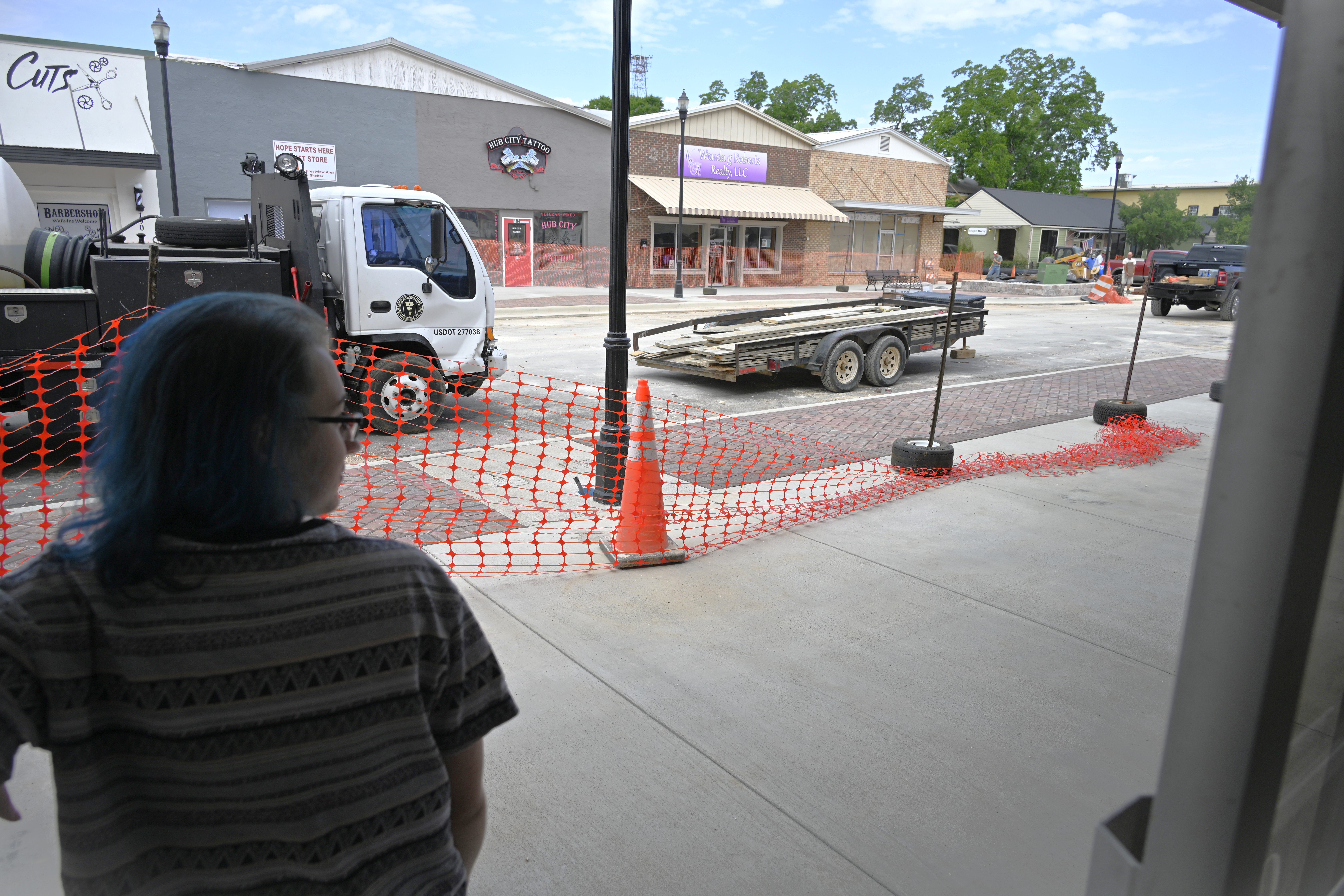 Luka Ramos, manager of Connect with Flowers, looks at the work occurring on Woodruff Avenue. (Photo by Tony Judnich)