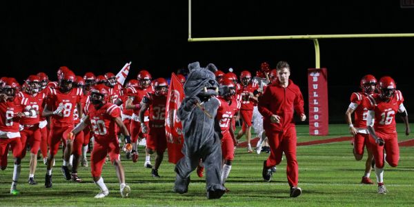 The Crestview Football Team runs out onto the field before a game during the 2024 season.