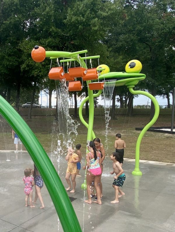 Children soak up the fun at the new splash pad. (Photo by Tony Judnich)