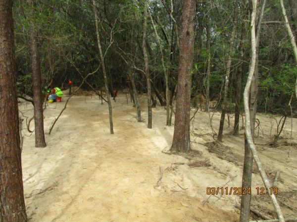Workers used shovels and buckets on March 11 to remove some of the sediment washed away from the site of FPL’s planned Kayak Solar Energy Center in Holt.
