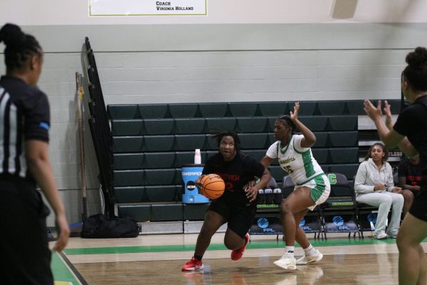 Tyandra Tatum goes to the basket in a game against Catholic. (Photo by Mac Knefely)