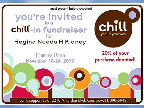 CRESTVIEW — A fundraiser for a Hub City resident who needs a kidney transplant runs 11 a.m. to 10 p.m. through Nov. 24 at a local yogurt shop.