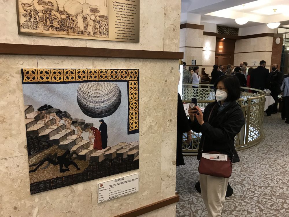 “The quilts were inspired by the poet’s verses and the American tradition of quilting,” Scialpi explained in her exhibit description. “’The Comedy in Quilt’ invites observers to join in Dante Alighieri’s journey in ‘The Divine Comedy,’ which begins in a dark forest, travels through Dante’s inferno imagery, reaches Lucifer at the center of the Earth, continues through Purgatory, and eventually ends in Paradise.”