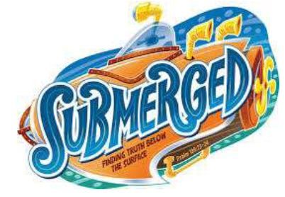 The topic is "Submerged," and music, games, Bible study arts and crafts are part of it. Snac…