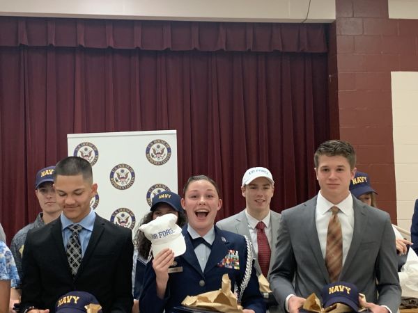 Paige Lorrance of Gulf Breeze reacts to learning U.S. Rep. Matt Gaetz has nominated her for enrollment in the U.S. Air Force Academy. Davin McCarty of Crestview, left, and Nathan Johnson of Milton, right, were among Gaetz’ 37 nominees.