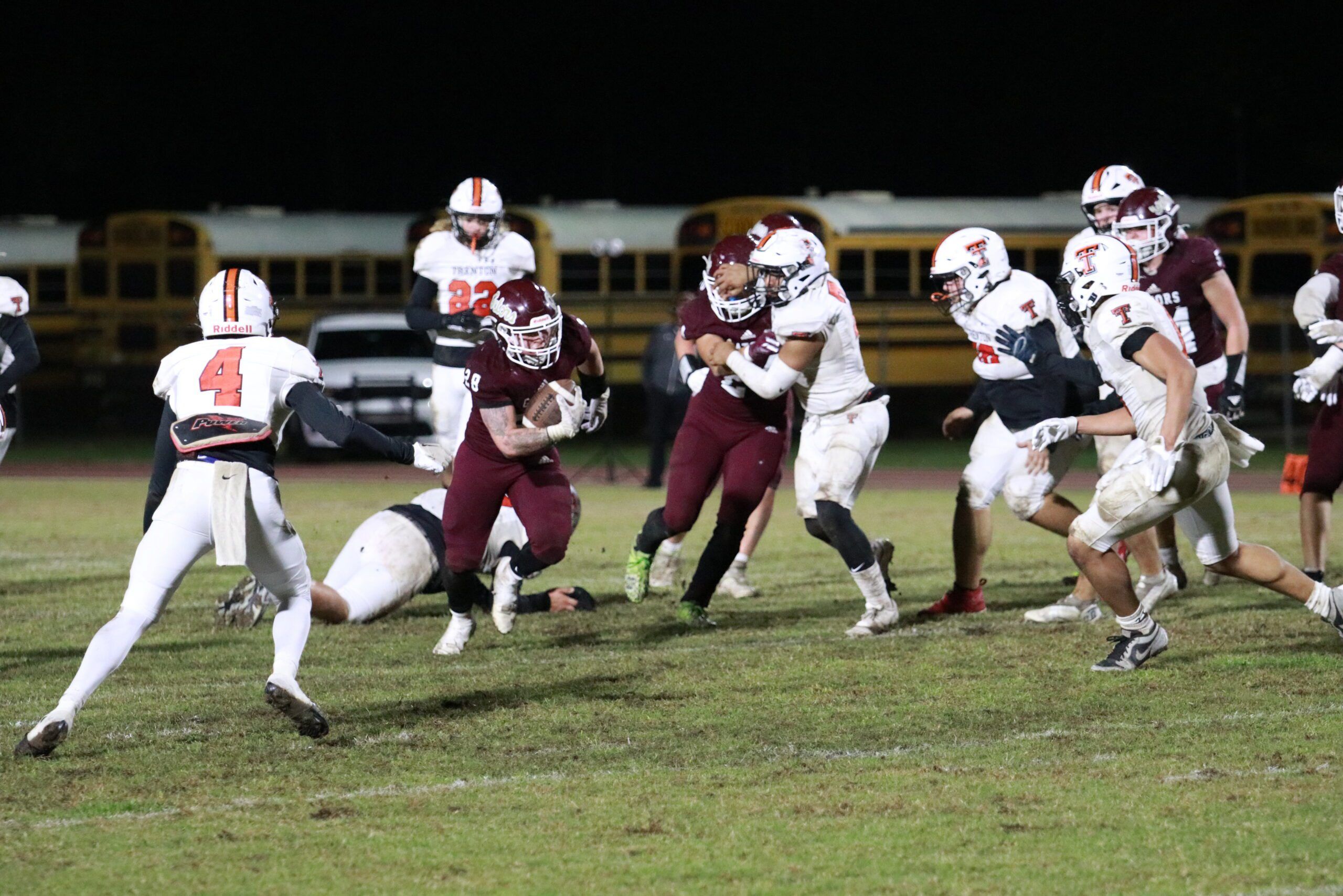 Layne Brewer prepares to run over defenders in regional final.