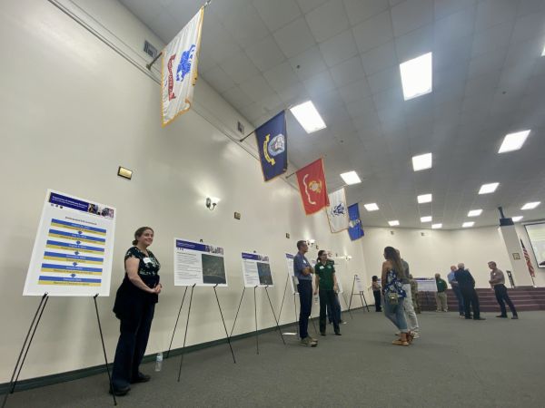 Residents talk with Eglin officials at Warriors Hall about the proposed new CDC. (Photo by Tony Judnich)