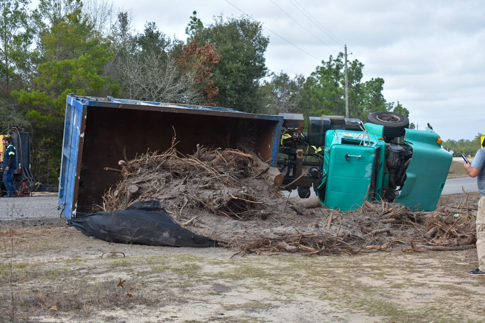 Overturned dump truck sends one to hospital in Crestview