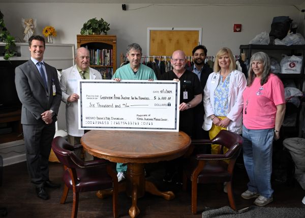 Big-hearted physicians from North Okaloosa Medical Center donated $6,000 to the Crestview Area Shelter for the Homeless this morning in celebration of National Doctor’s Day.