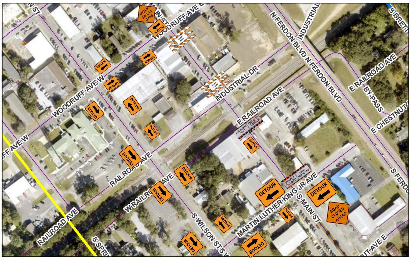 To make way for Crestview’s Main Street renovation project, the portion of Main Street between Industrial Drive and East Woodruff Avenue will be closed starting on Monday, April 15.
