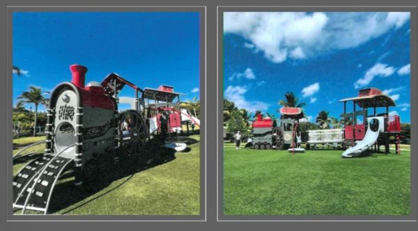 A train-themed play structure, such as the one pictured here, is coming to Rotary Park in downtown Crestview.