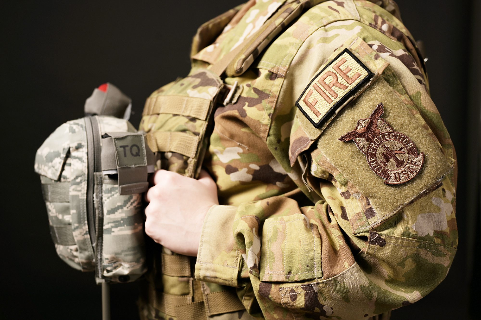 U.S. Air Force Tech. Sgt. Alyssa Poyner, a 1st Special Operations Civil Engineer Squadron lead firefighter, poses for a photo at Hurlburt Field, Florida, Jan. 25, 2024. The “FIRE” patch refers to the fire and emergency services career field. (U.S. Air Force photo by Senior Alysa Airman Calvarese)