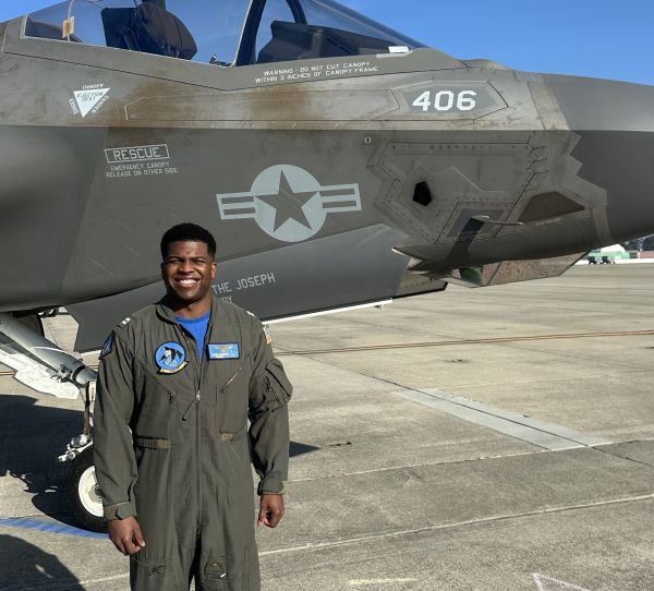 Caleb Champion will be part of the flyover at the Super Bowl.