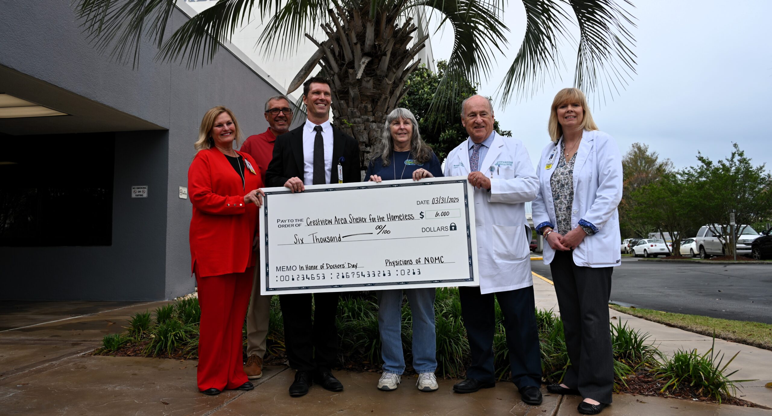 The nonprofit Crestview Area Shelter for the Homeless received a $6,000 donation today from the medical staff at North Okaloosa Medical Center.