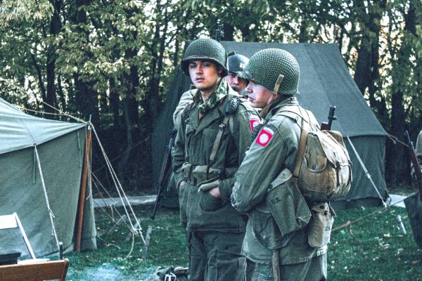 Cade Fisher and Grant Brooks portray 82nd Airborne paratroopers during a recent WWII reenactment. Visitors to the Crestview event Sept. 1-3 will see such attention to historic accuracy.